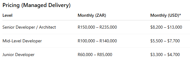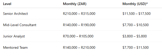 All pricing presented on this Services Menu is indicative and provided for general guidance purposes only. Final pricing is subject to a detailed assessment of the specific scope of work, project complexity, timelines, resource requirements, and any client-specific considerations.